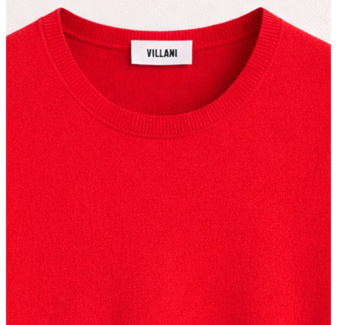 PULL COL ROND MANCHES COURTES ROUGE