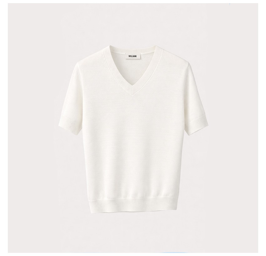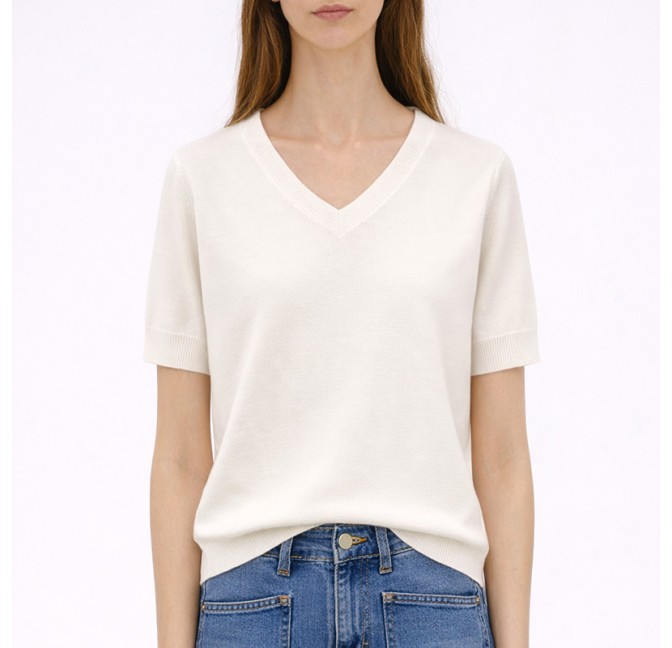 Pull blanc col V manches courtes